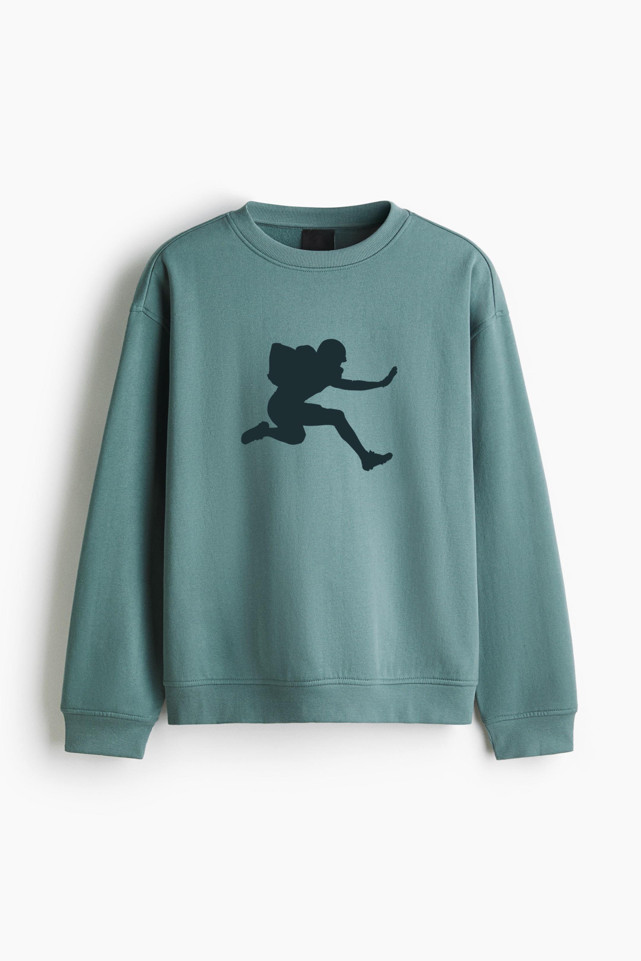 Jumping American Football Player Silhouette Regular Fit Printed Sweatshirt Regular Fit Printed Sweatshirt – Soft Cotton Fleece Pullover with Graphic Design