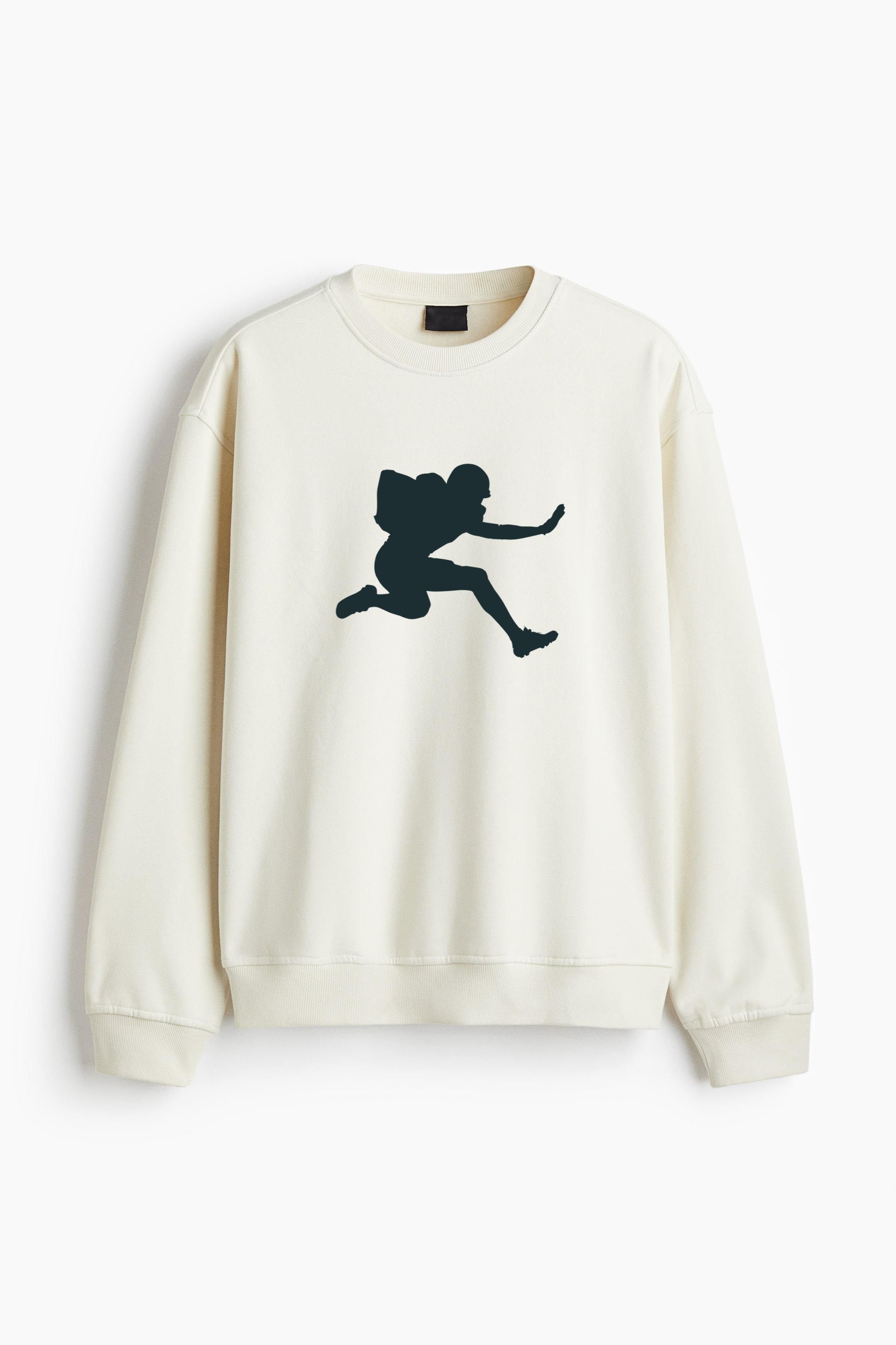 Discover comfort and creativity with our Jumping American Football Player Silhouette Regular Fit Printed Sweatshirt Regular Fit Printed Sweatshirt, designed for both warmth and self-expression. Crafted from a premium cotton-polyester fleece blend, it features a soft brushed interior and a smooth outer surface that showcases vibrant graphic prints.