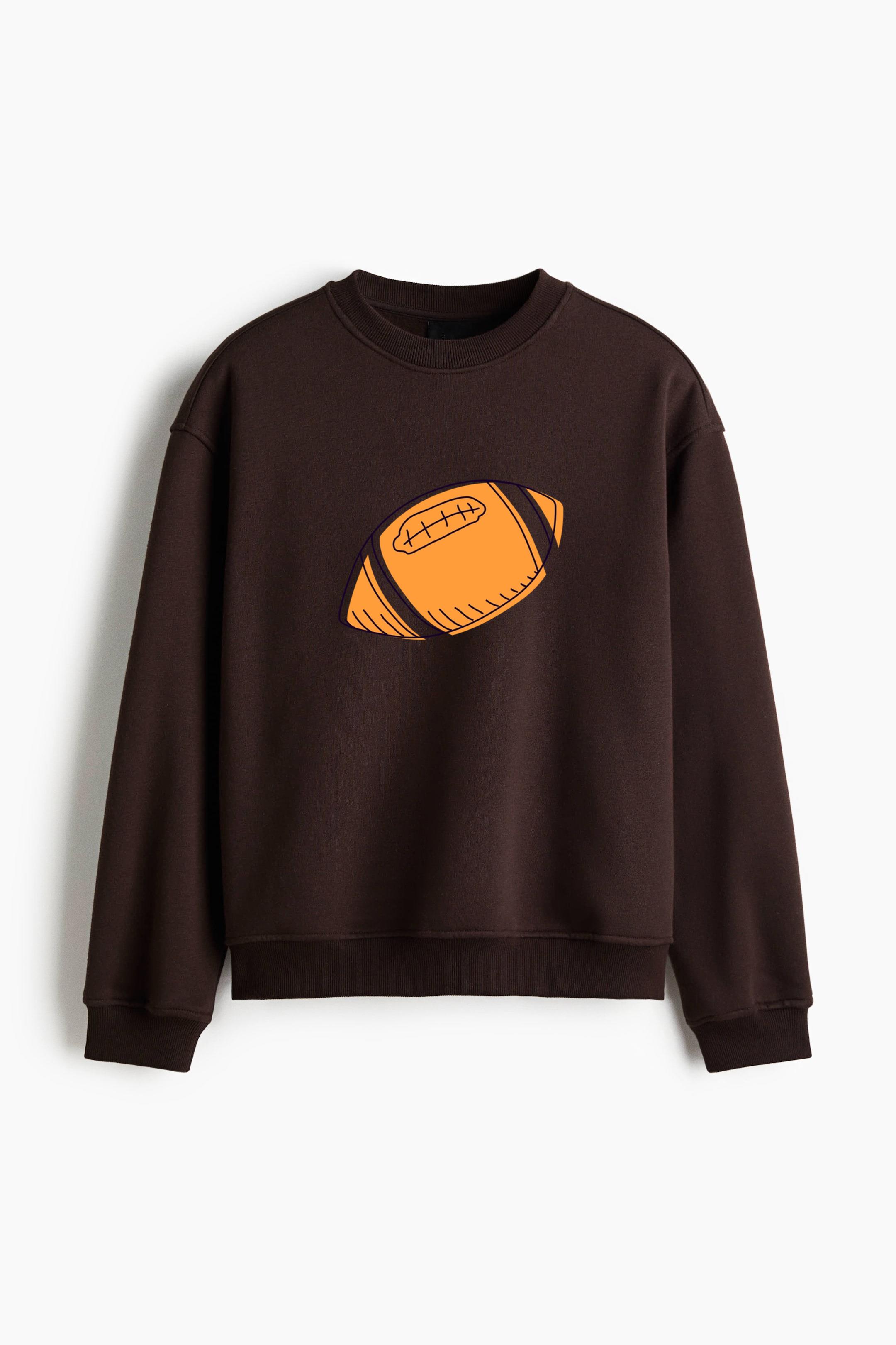 Orange Football Hand Drawn Regular Fit Printed Sweatshirt Regular Fit Printed Sweatshirt – Soft Cotton Fleece Pullover with Graphic Design