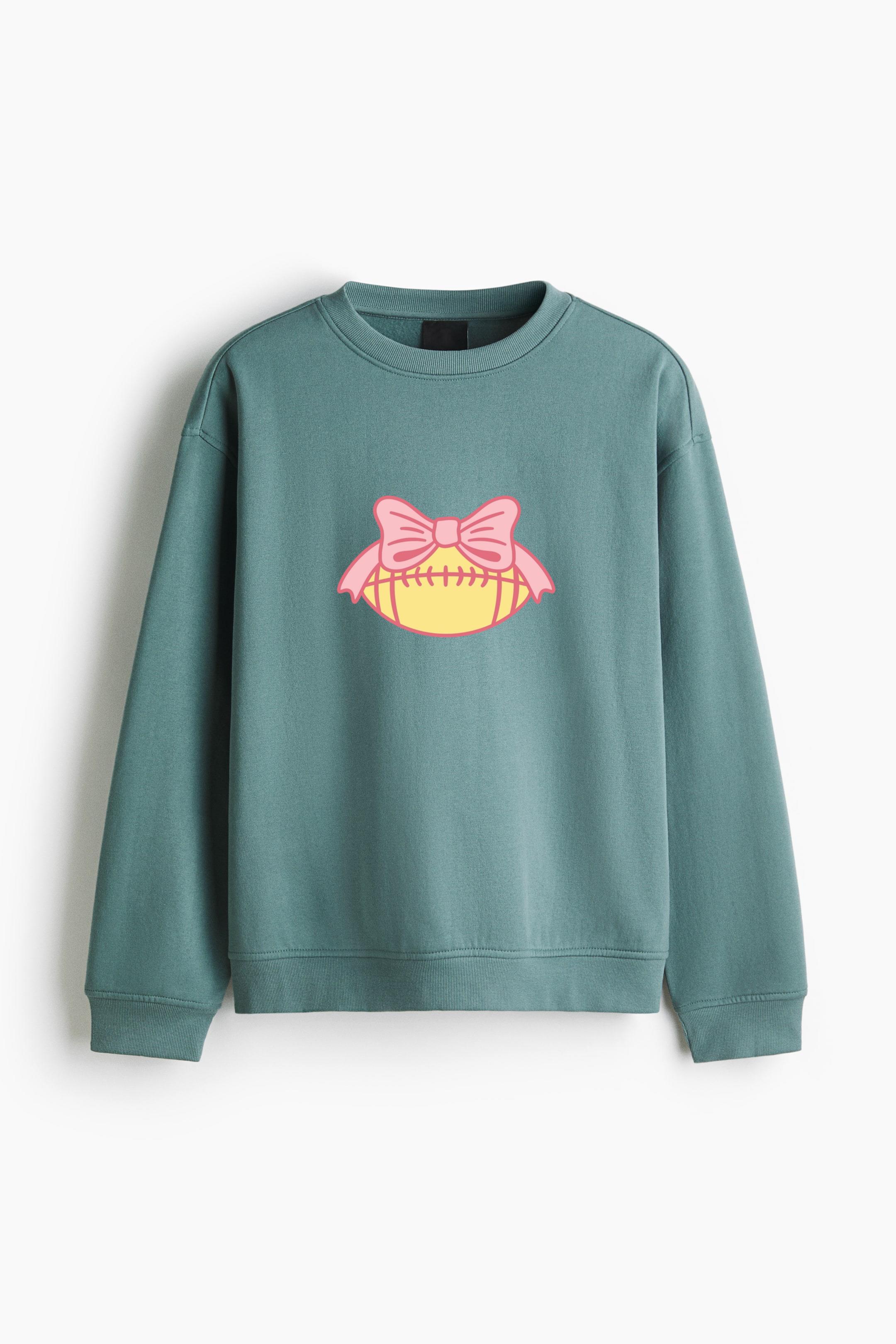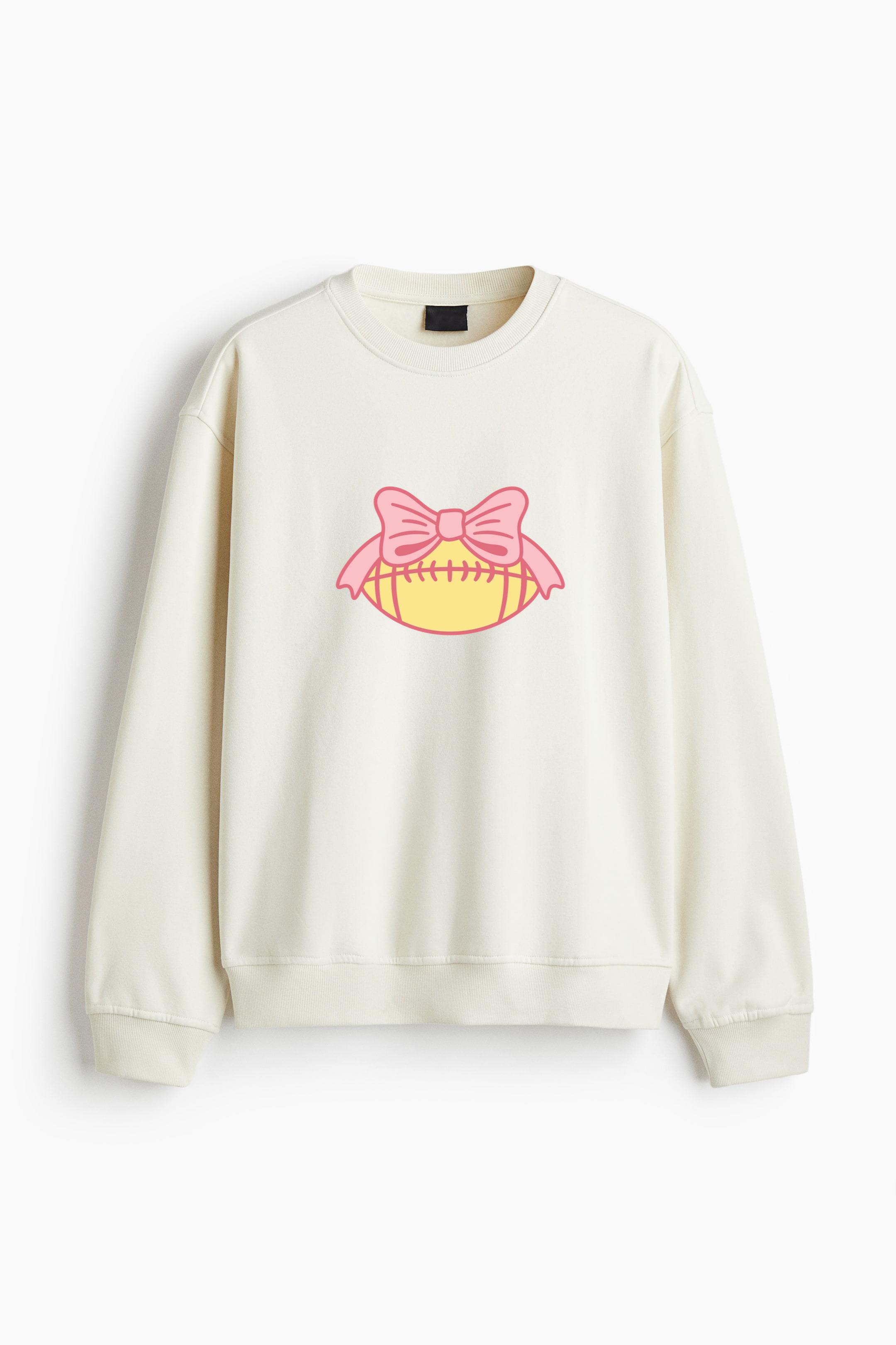 Pink Bow Football Design Regular Fit Printed Sweatshirt Regular Fit Printed Sweatshirt – Soft Cotton Fleece Pullover with Graphic Design